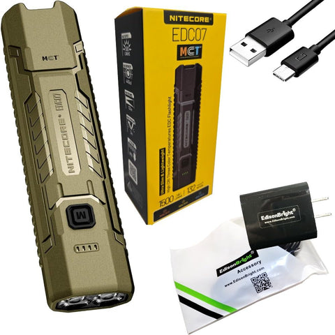 Nitecore EDC07 Flat Stylish EDC Flashlight, 1500 Lumens, Rechargeable, Cool/Warm/Neutral White switchable, Lightweight Everyday Carry Light w/EBR Charger